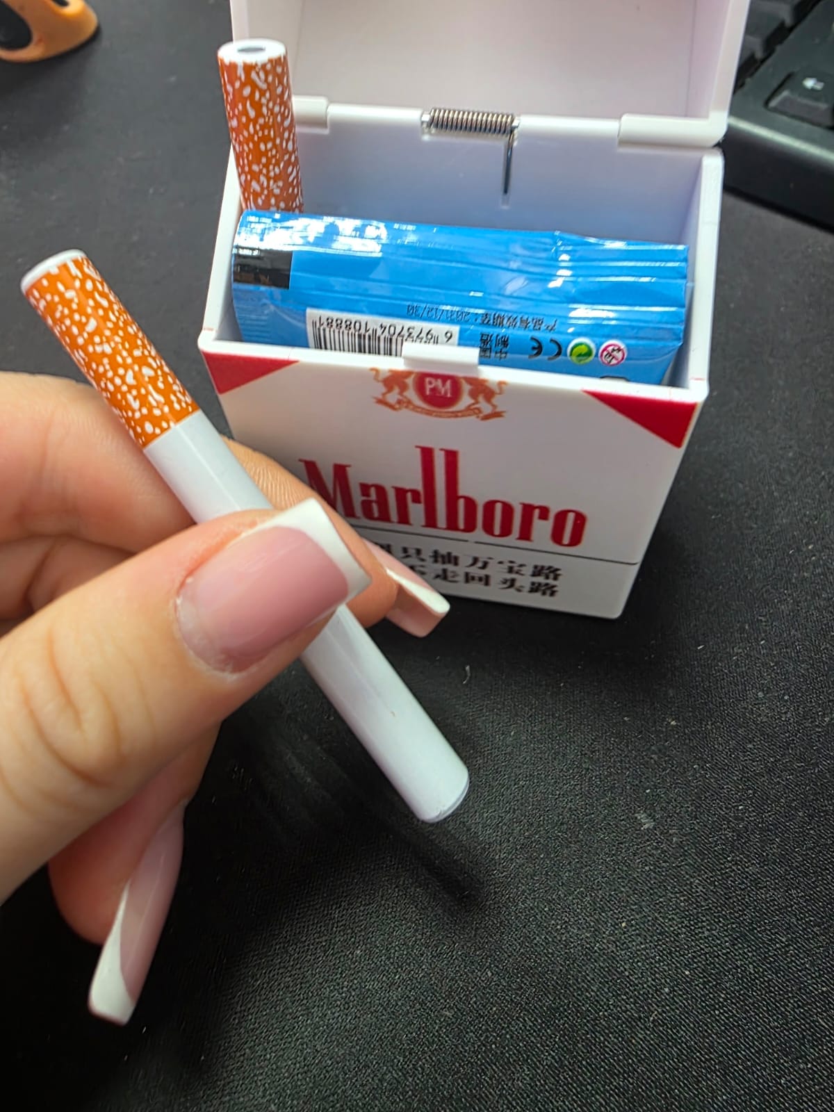 Disfruta la diversión de un cigarrillo realista sin humo dañino, perfecto para fiestas, aliviar el estrés o simplemente iniciar una conversación divertida.