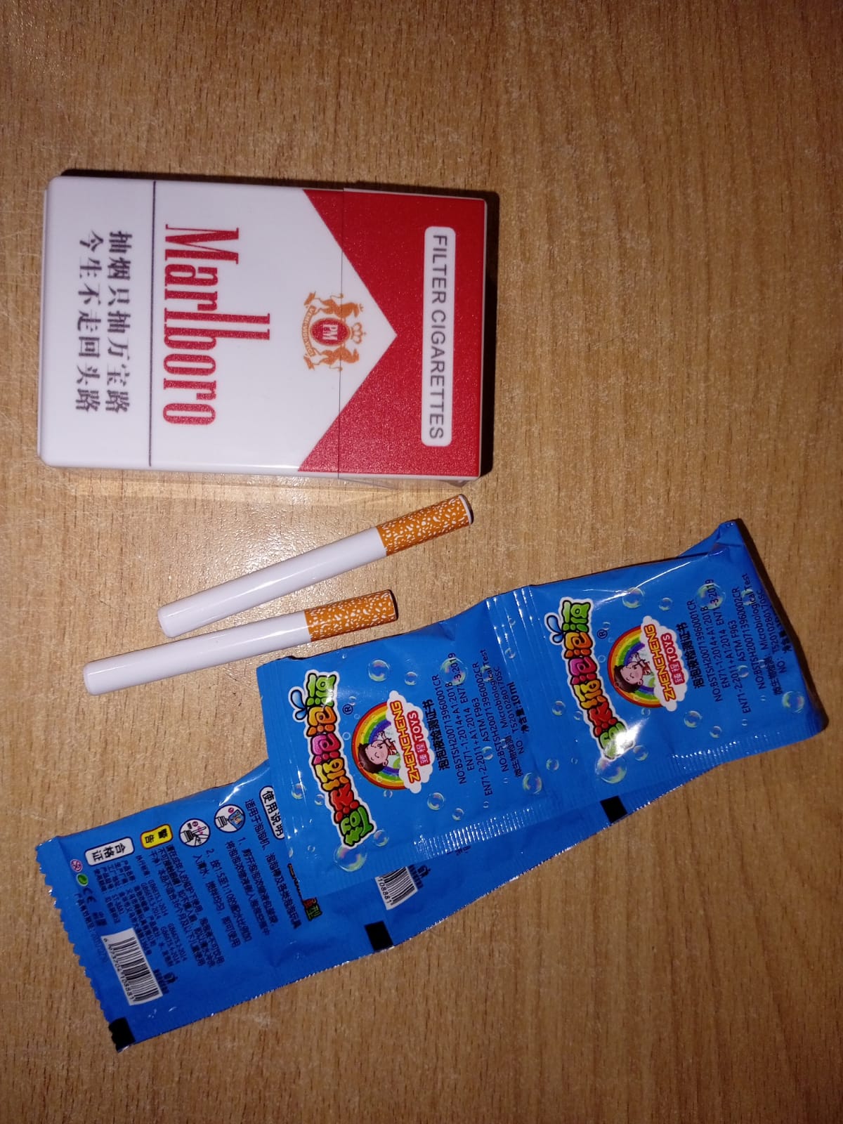 • Incluye 2 cigarros de burbujas